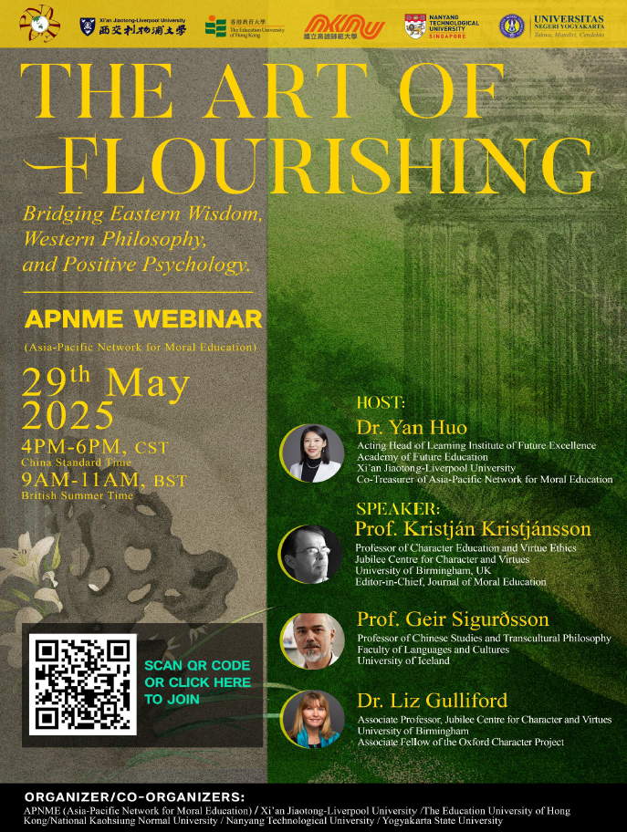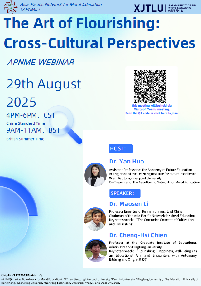 Co-organizers: APNME (Asia-Pacific Network for Moral Education), Kaohsiung Normal University of Taiwan, Nanyang Technological University of Singapore, The Education University of Hong Kong, Xi’an Jiaotong-Liverpool University, Yogyakarta State University of Indonesia