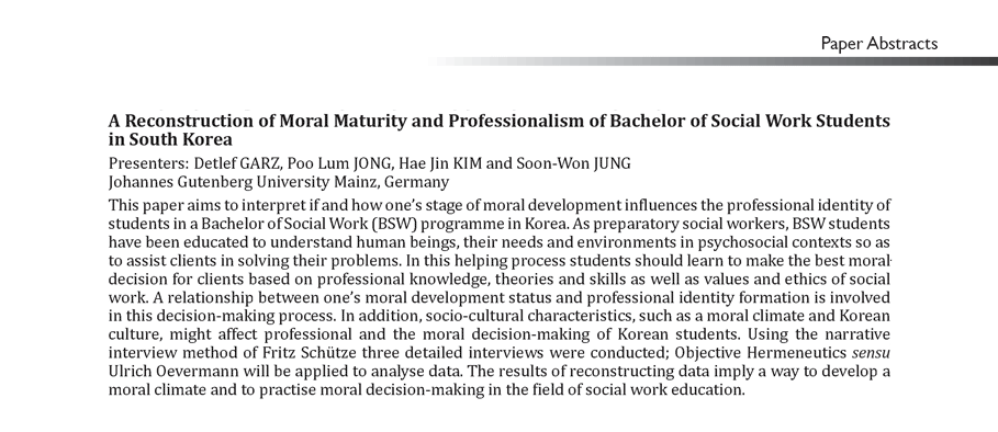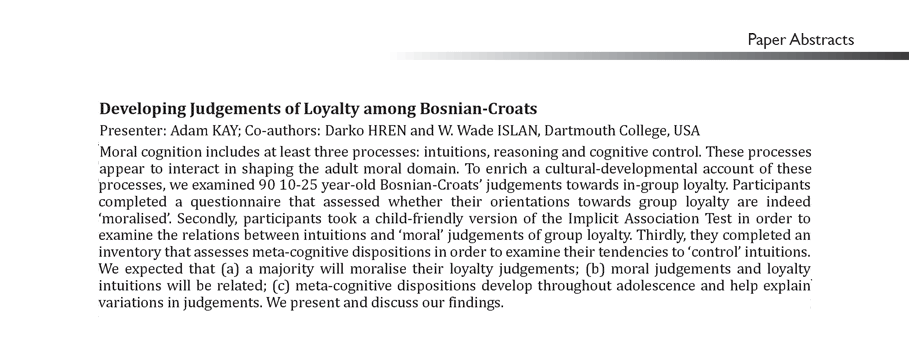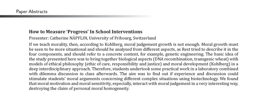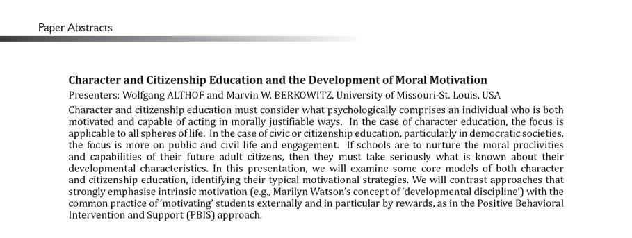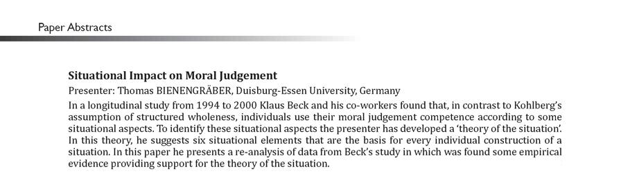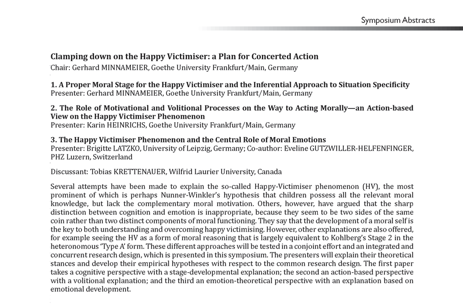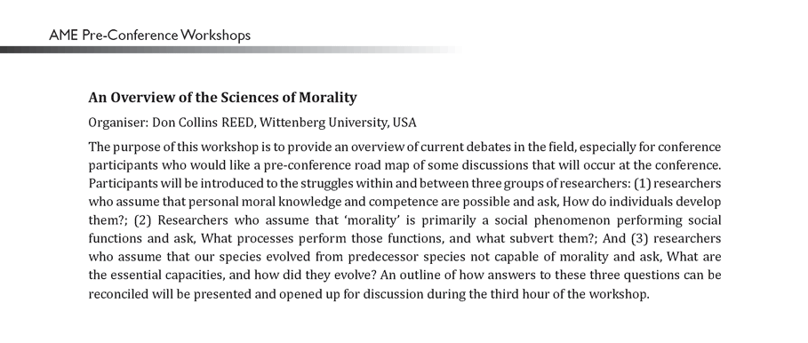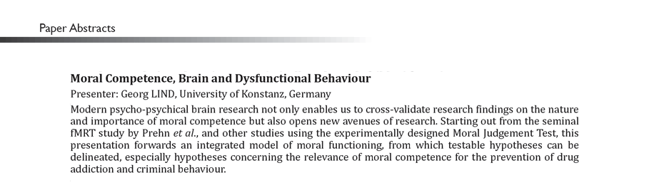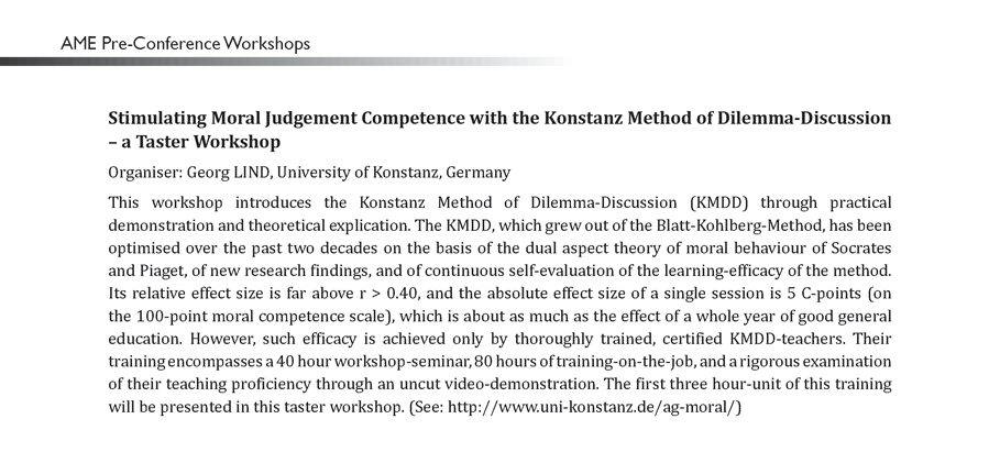 | 8:30am - 12:00 | Stimulating Moral Judgement Competence with the Konstanz Method of Dilemma-Discussion – a Taster Workshop Georg LIND |