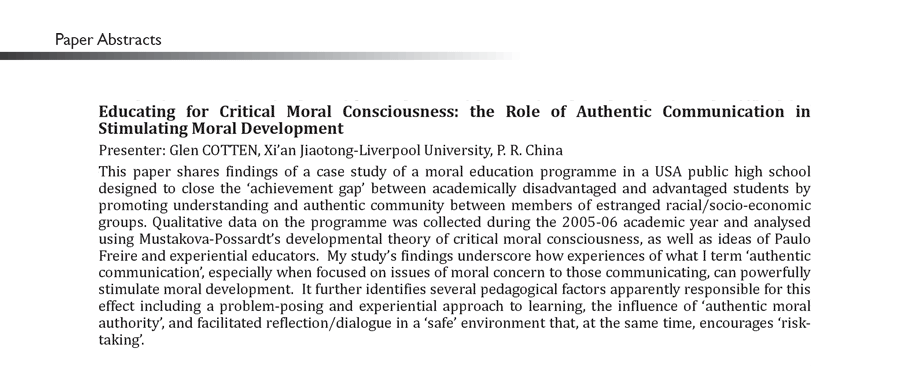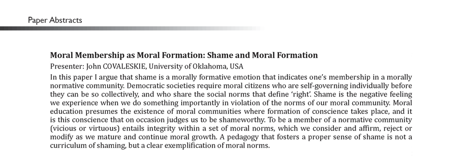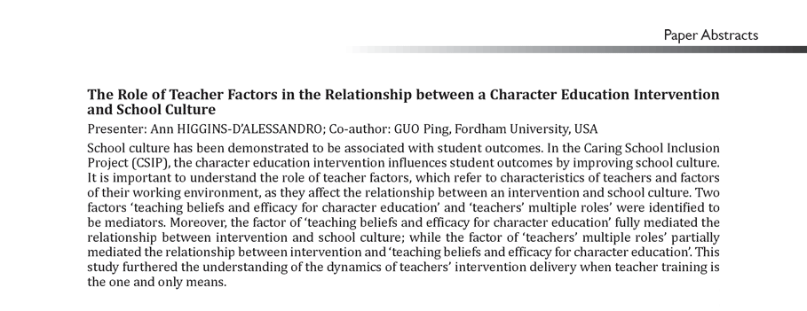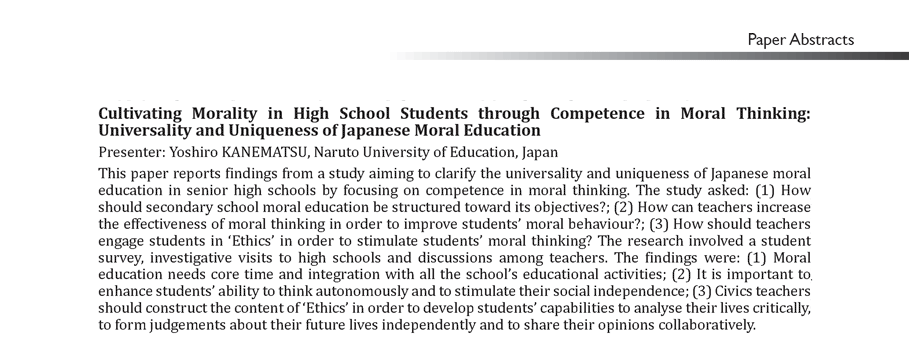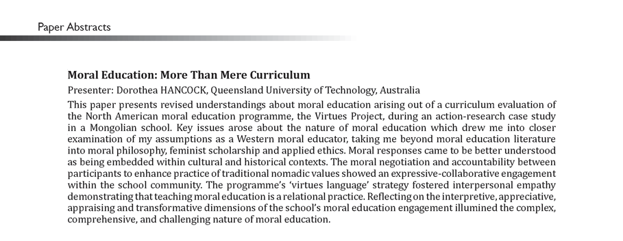 The Asia-Pacific Network for Moral Education 6th annual conference