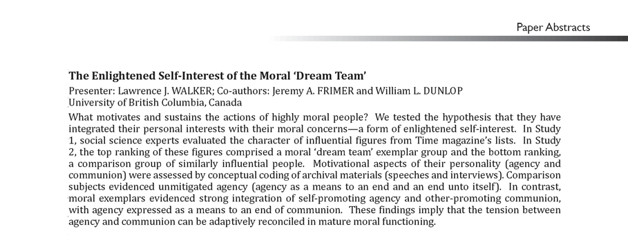 MORAL MOTIVATION – CONTRASTING DIFFERENT CONCEPTS Moral Motivation and Rest's Four Component Model Stephen J. THOMA Measuring Moral Motivation in the Professions Muriel J. BEBEAU To Bring Will and Reason within the Impulsive Life Don Collins REED Responsibility-Motivation: a New Construct Fritz OSER Discussant: Gerhard MINNAMEIER |