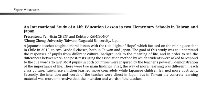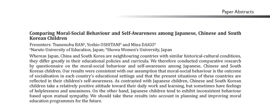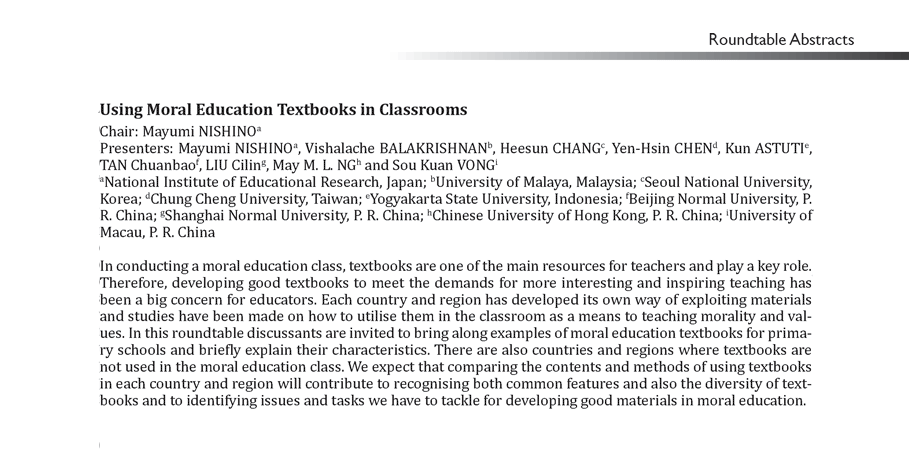 USING MORAL EDUCATION TEXTBOOKS IN CLASSROOMS Mayumi NISHINO, Vishalache BALAKRISHNAN, Heesun CHANG, Yen-Hsin CHEN, Kun Setyaning ASTUTI, TAN Chuanbao, LIU Cilin, May M. L. NG and Sou Kuan VONG |