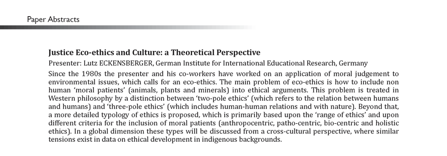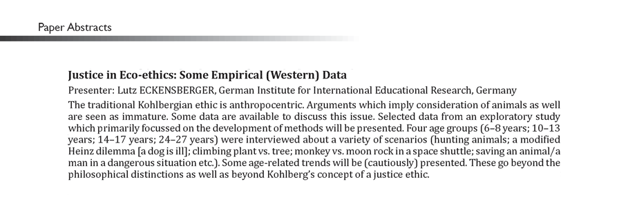 ECO-ETHICS REASONING AND JUSTICE Rethinking Eco-centric Ethical Reasoning in the Environmental Age Hueyli LI Justice Eco-ethics and Culture: a Theoretical Perspective Lutz ECKENSBERGER Justice in Eco-ethics: Some Empirical (Western) Data Lutz ECKENSBERGER |