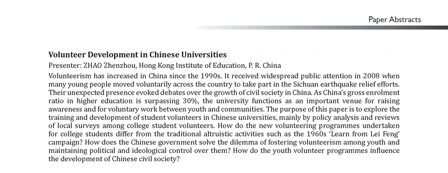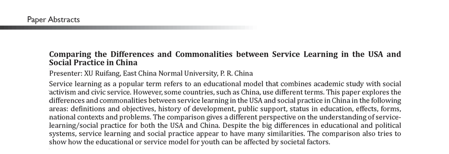 CIVIC CONSCIOUSNESS, VOLUNTEERING AND SERVICE LEARNING IN CHINA Citizen Consciousness and Moral Education Development in Chinese University Students PENG Xiaolan Volunteer Development in Chinese Universities ZHAO Zhenzhou Comparing the Differences and Commonalities between Service Learning in the USA and Social Practice in China XU Ruifang |