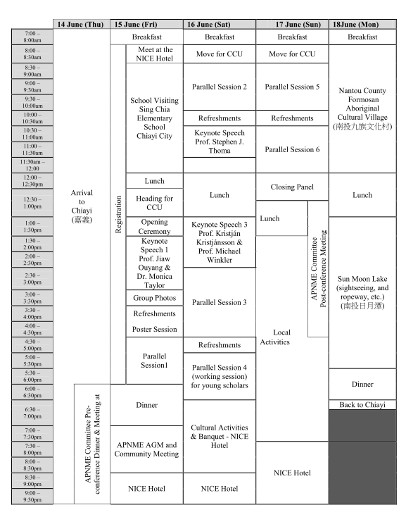 Programme - The 7th Annual Conference of The Asia-Pacific Network for Moral Education - Research and practice in moral education: reflection, dialogue, interaction - College of Education, National Chung Chen University, Chiayi, Taiwan, 15-17 June, 2012
