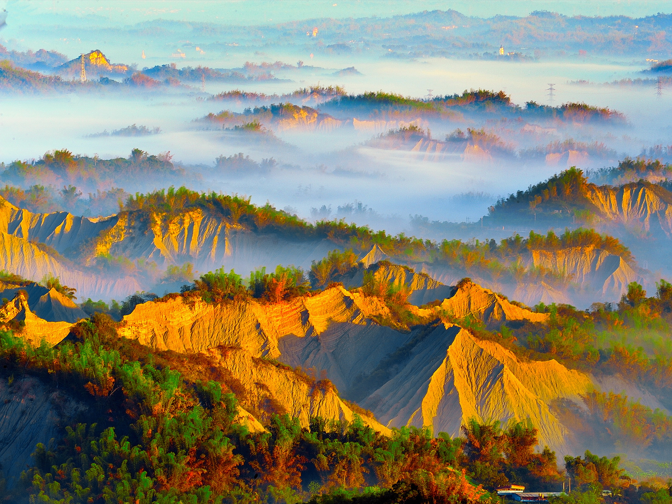 Tianliao Moon World is the most developed mud volcano area in Taiwan and, to use the geological term, it is a “badlands”—a land of desolate, barren beauty. It extends from Tianliao to Qishan along Provincial Highway No. 28, a road which passes more that 20 mud volcanoes. The Dagunshui and Xiaogunshui volcanoes are most famous for their eruptions, which can surprisingly often be seen. The Mudstone Geographical Center, situated at the Scenic Area's entrance, offers illustrated explanations of the nature of mudstone, and will give you a deeper appreciation of Tianliao Moon World.